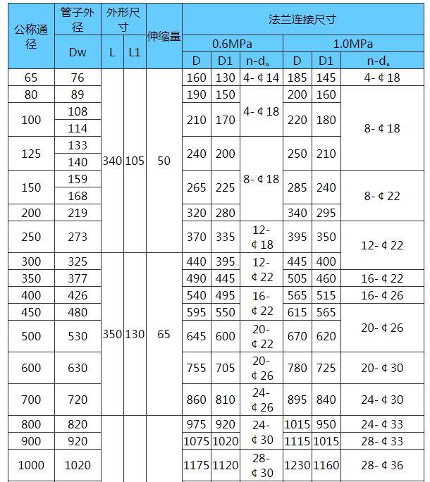 VSSJA-1型單(dān)法蘭限位伸縮接頭(tóu)技術參數