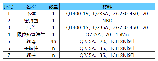 VSSJA-1型單法蘭限位伸縮(suō)接頭材料表
