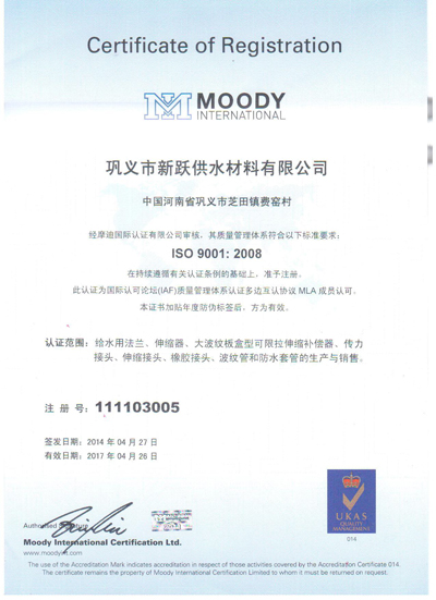 歡迎來到鞏義市(shì)91入口供水材料有限公(gōng)司官(guān)方網站!您現在(zài)訪問的是:《ISO9001中文認證》頁麵,如需幫助請(qǐng)致電:13140066578 或 0371-64100988